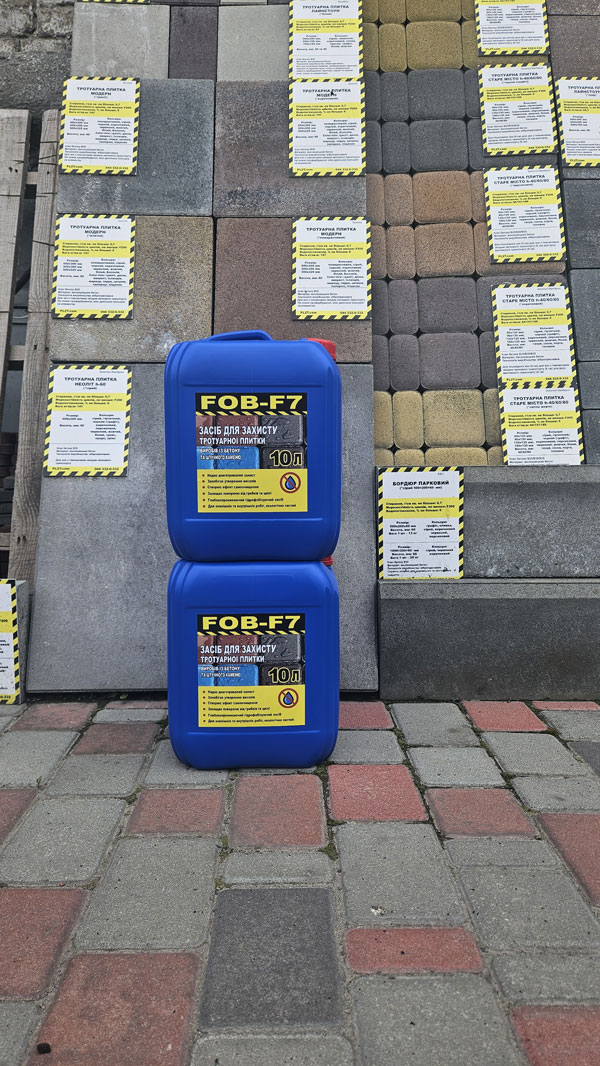 Главное преимущество использования FOB-F7 на тротуарной плитке заключается в том, что она защищает покрытие от проникновения воды и растворенных солей, которые могут вызвать разрушение плитки и нежелательное появление высолов. FOB-F7 также создает эффект самоочистки, который помогает сохранять чистоту и эстетический вид тротуарной плитки. Кроме того, FOB-F7 увеличивает морозостойкость материала, что особенно важно в зимний период.