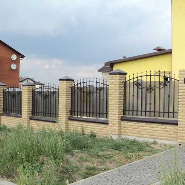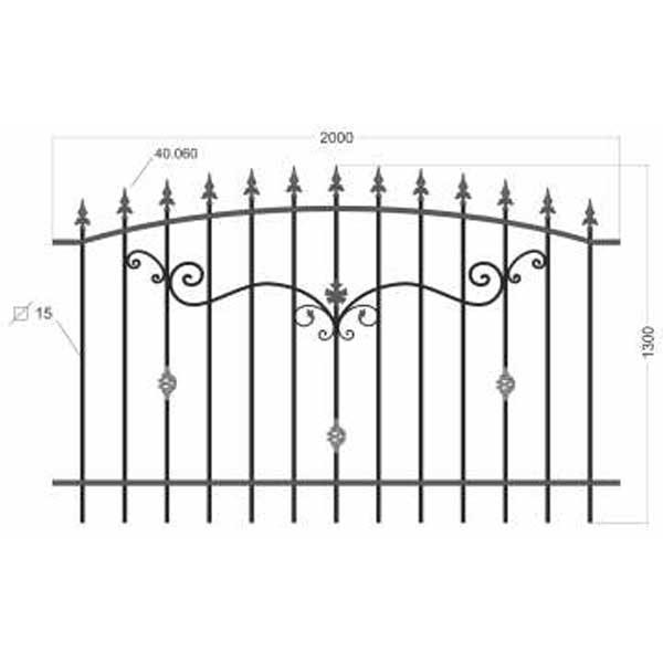 Кованый забор «Натали» – это надёжная секция ограждения с декоративными элементами. Изящные завитки и аккуратная симметрия придают конструкции элегантный и завершённый вид. Забор отлично сочетается с воротами и калиткой из той же серии, образуя цельный архитектурный ансамбль.