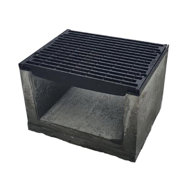 Этот лоток обладает большой пропускной способностью и предназначен для использования в условиях высоких нагрузок. Чугунная решетка обеспечивает прочность, а бетонный корпус - устойчивость к износу.