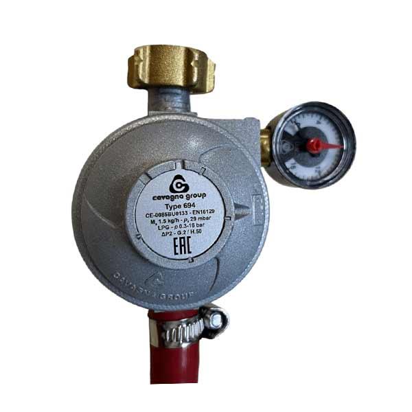 Комплект редуктор на газовый баллон с манометром и шлангом предназначен для подключения к газовым баллонам со сжиженным природным газом (СПГ) газовых плит и обогревателей. Манометр позволяет визуально котролировать давление в системе. Редуктор поддерживает постоянное давление при выходе газа из баллона. Регулятор Сavagna Италия сертификацирован в Украине.