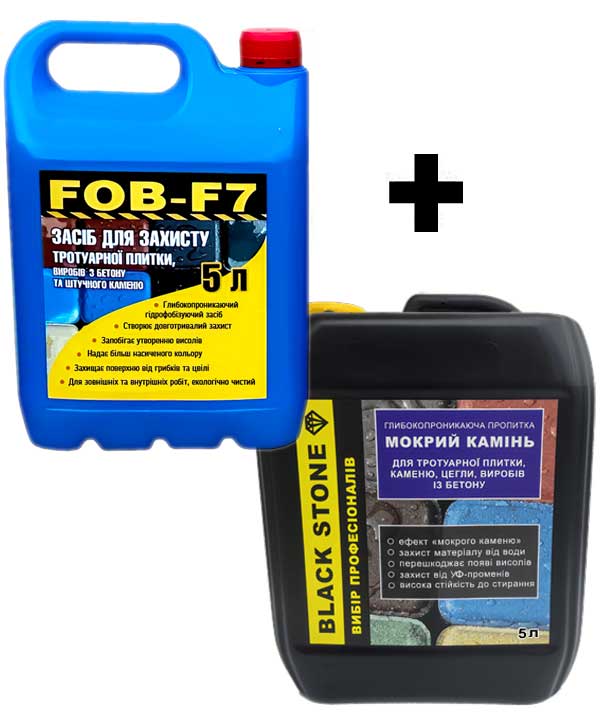 Комплект "Гидрофобизация и мокрый камень" включает гидрофобизатор для бетона FOB-F7 + защитная пропитка мокрый камень Black Stone – это универсальное решение для надежной защиты минеральных поверхностей на длительный срок. В сочетании эти два средства обеспечивают глубокую гидрофобизацию и декоративный эффект "мокрого камня", укрепляют и обеспыливают материал.