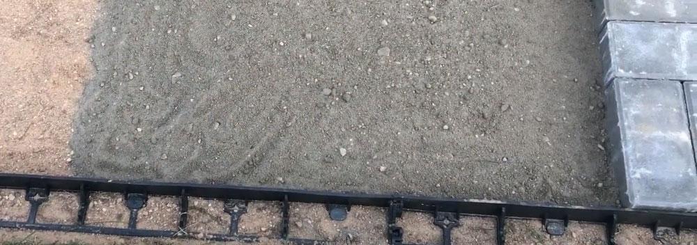 Цим способом можна скористатися, якщо площа мощення не має великої кількості вигинів. Зате куточок в якості бордюру для тротуарної плитки можна використовувати і на бетонній основі.