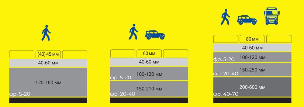 Виробники тротуарної плитки радять користуватися наступними міркуваннями при виборі товщини шару щебеню: