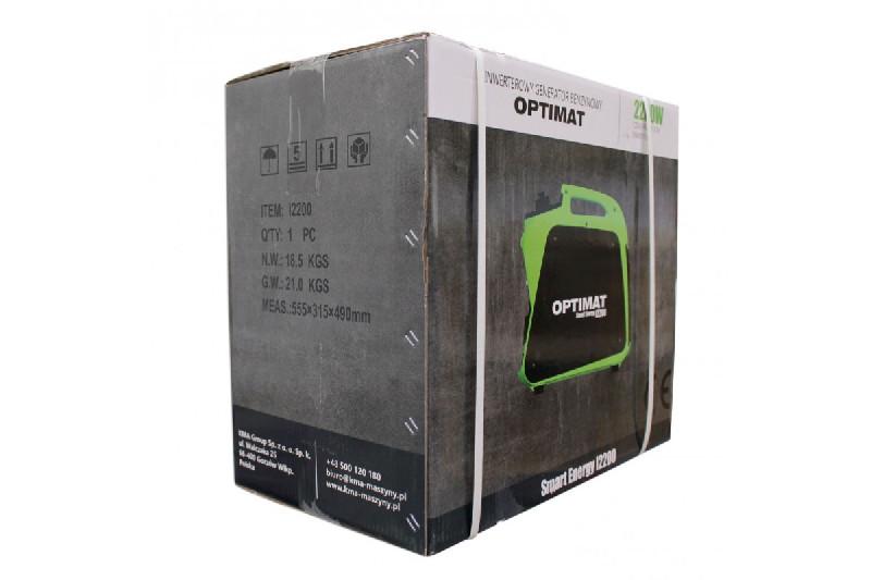 Генератор оснащений ручним запуском, двома розетками 230 В, виходом 12 В, захистом від перевантаження і низького рівня масла. Компактний корпус і вага близько 21 кг дозволяють легко транспортувати генератор і використовувати його в мобільних умовах. Модель відповідає стандарту CE і відноситься до лінійки професійних інверторних генераторів польського бренду OPTIMAT.