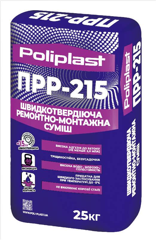 Суміш ПРР-215 – професійний спеціальний ремонтний та монтажний розчин, який швидко набирає міцність (через 30 хв. міцність розчину становить близько 15 МПа), що дозволяє проводити роботи в короткий термін.