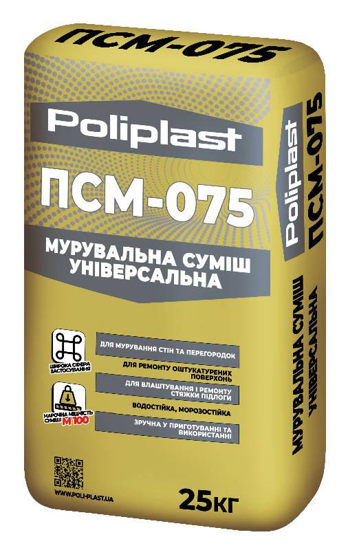 Кладочна суміш універсальна ПСМ-075 ЗИМА застосовується для кладки стін та перегородок з керамічної, клінкерної та силікатної цегли; кладка шлакоблоків; відновлення та ремонт елементів кладки та оштукатурених поверхонь, влаштування, вирівнювання та ремонт стяжки підлоги.