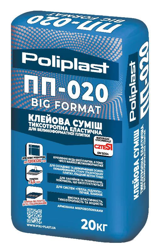 Рекомендовано для облицювань горизонтальних та вертикальних основ, в тому числі: фасадів, терас, балконів, басейнів та резервуарів, підлог з підігрівом. Використовується для облицювання в місцях з інтенсивним рухом і високими механічними навантаженнями. ПП-020 BIG FORMAT ефективна для облицювання по поверхням з укладеною плиткою, міцному лакофарбовому покриттю, фібролітових