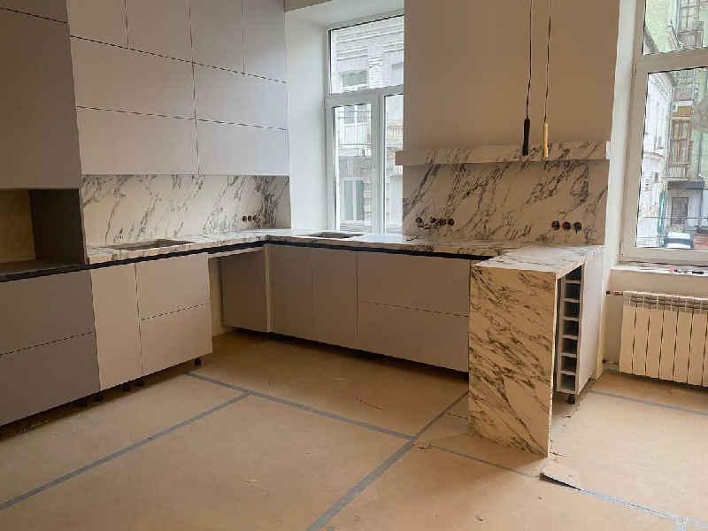 Щоб надати приміщенню завершеного вигляду, крім керамогранітних стільниць і кухонних островів пропонуємо послуги з облаштування кухні керамогранітом. Зокрема, це установка фартуха з керамограніту, обклеювання фасаду кухні керамогранітом.