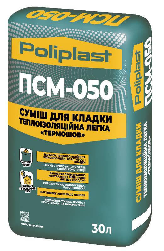 Теплоізоляційна суміш ПСМ-050 «Термошов» -суха будівельна модифікована суміш для мурування зовнішніх та внутрішніх стін, перегородок із різноманітних керамічних та інших теплоізоляційних мурувальних виробів: керамічних пустотілих блоків, шлакоблоків, керамзитоблоків, блоків та панелей з ніздрюватого бетону (піно-,газобетону тощо), двійної цегли, силікатної цегли, рядової та іншої цегли, тощо.