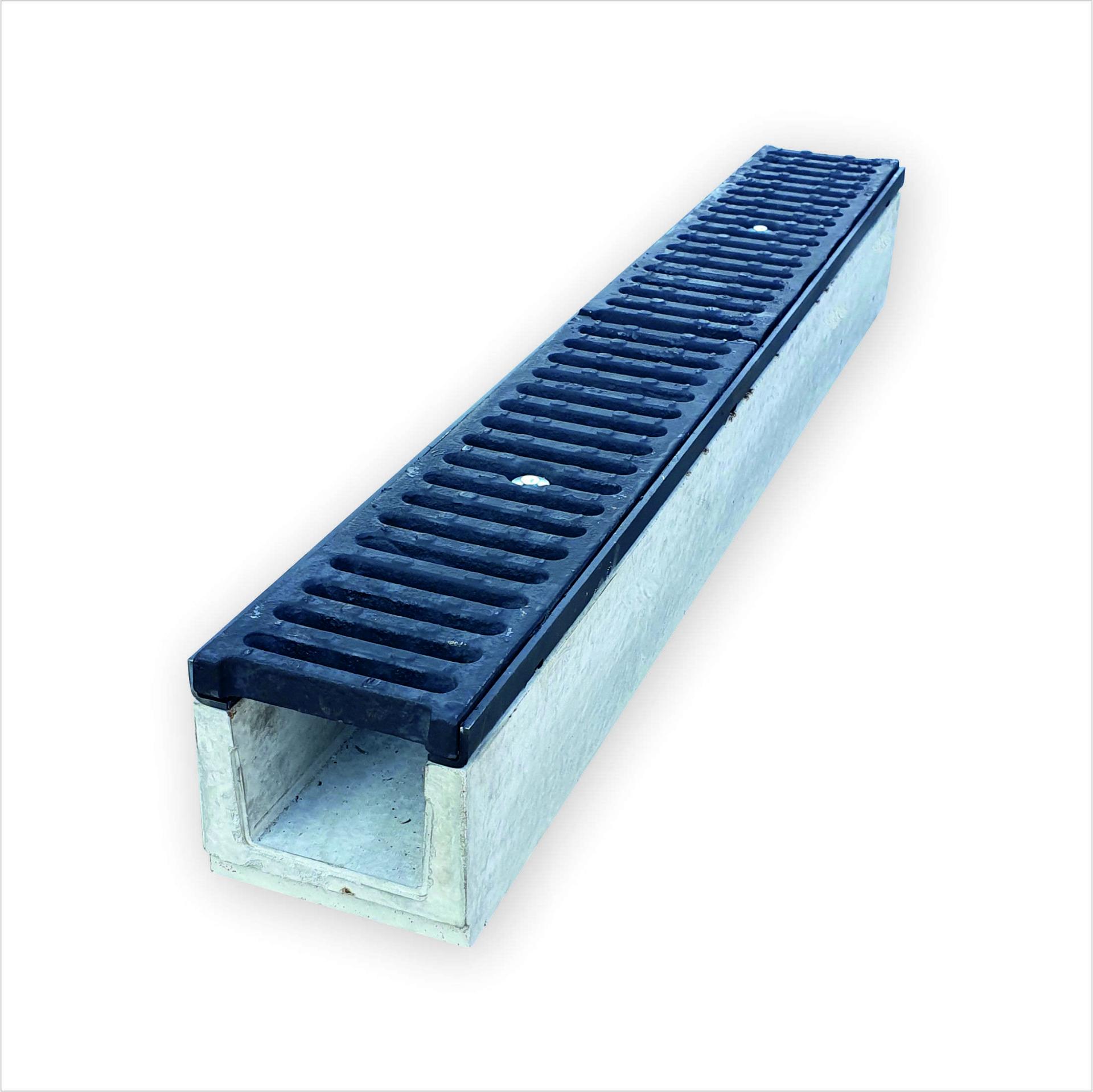Бетонний лоток ЛВ 10.14.13 з чавунною решіткою класу D, Е розроблений для зон з екстремально високим навантаженням, таких як промислові зони та дороги з інтенсивним рухом вантажного транспорту. Чавунна решітка забезпечує максимальну міцність та зносостійкість. Бетонний корпус витримує значні навантаження та забезпечує довговічність конструкції.