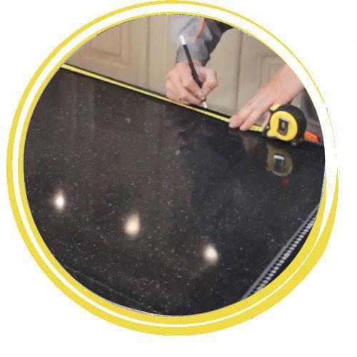 Професійний монтаж стільниці з каменю з вирізами під мийку, варильну поверхню та аксесуари.