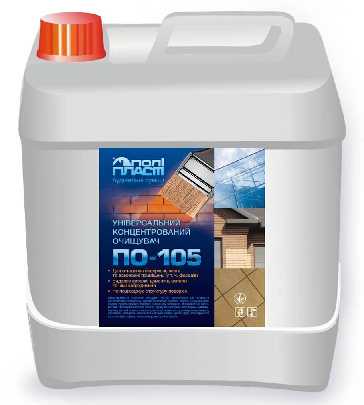Універсальний концентрований очисник ПО-105 ПРЕМІУМ використовується для очищення кислотостійких мінеральних поверхонь, фасадів з цегли, клінкерної плитки, природного каменю, виробів з високоякісної сталі та скла від цементних, бетонних та вапняних розчинів, а також від плям, нальотів, висолів та атмосфер. спеціальний засіб. Цей засіб не впливає на колір і не ушкоджує структуру поверхні, підходить як для внутрішніх, так і для зовнішніх робіт.