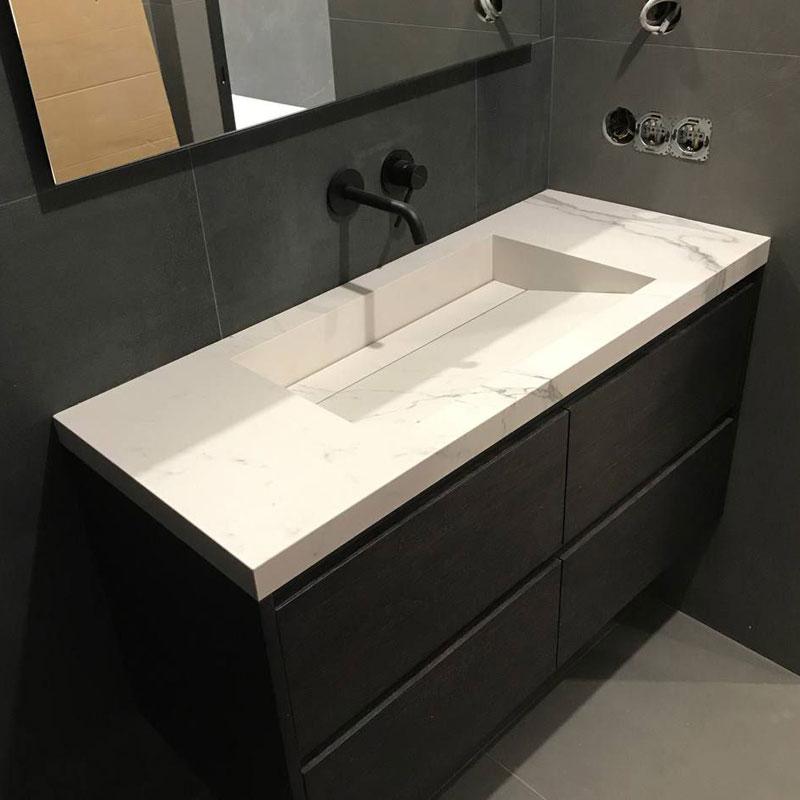 Раковина з керамограніту із щілинним зливом Eleganza стане гармонійним акцентом у вашому інтер'єрі, підкресливши бездоганний смак та увагу до деталей.