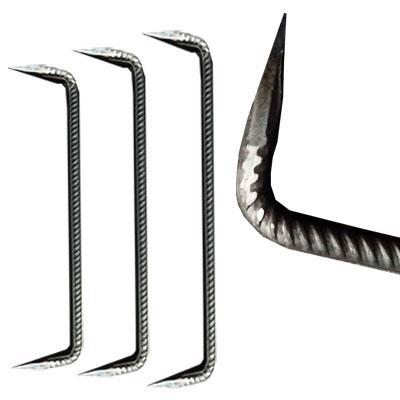 Скоба будівельна К853 виготовляється з міцної арматури методом гарячого кування, що забезпечує високу стійкість до механічних навантажень та тривалий термін експлуатації. Загострені кінці дозволяють легко монтувати виріб у брус або колоду без розтріскування деревини, забезпечуючи щільну та довговічну фіксацію.