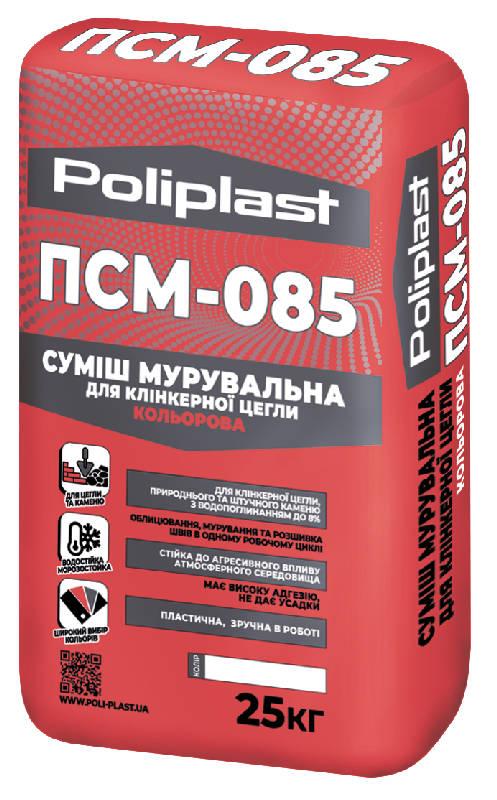 Суміш мурувальна для клінкерної цегли ПСМ-085 – суха будівельна суміш для мурування та облицювання зовнішніх і внутрішніх стін декоративними матеріалами з низьким водопоглинанням (до 6%) – такими як клінкерна та гіперпресована цегла, блоки з природного і штучного каменю та ін. з одночасним заповненням та розшивкою швів в одному робочому циклі.