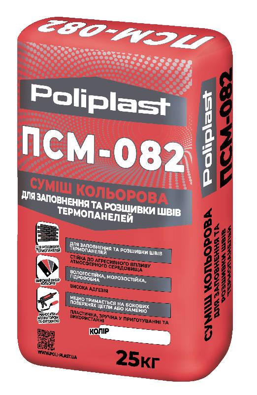 ПСМ-082 - суха кольорова суміш для заповнення та розшивки швів термопанелей та інших облицювальних матеріалів (кладки клінкерної, керамічної, силікатної лицьової цегли, натурального і штучного каменю, облицювальної плитки та інших стінових матеріалів) шириною до 20 мм між облицювальними матеріалами всередині і зовні приміщень .
