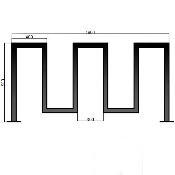 Стильна і проста велопарковка «Змійка» може вільно розмістити 3 велосипеди або, в деякій тісноті, 5. Вона стане функціональною прикрасою вашого офісу або магазину. Виготовляється як у варіанті під швидке кріплення (на анкери), так і під бетонування.
